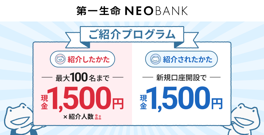 第一生命NEOBANKでは、以下の口座開設キャンペーンを開催中です。