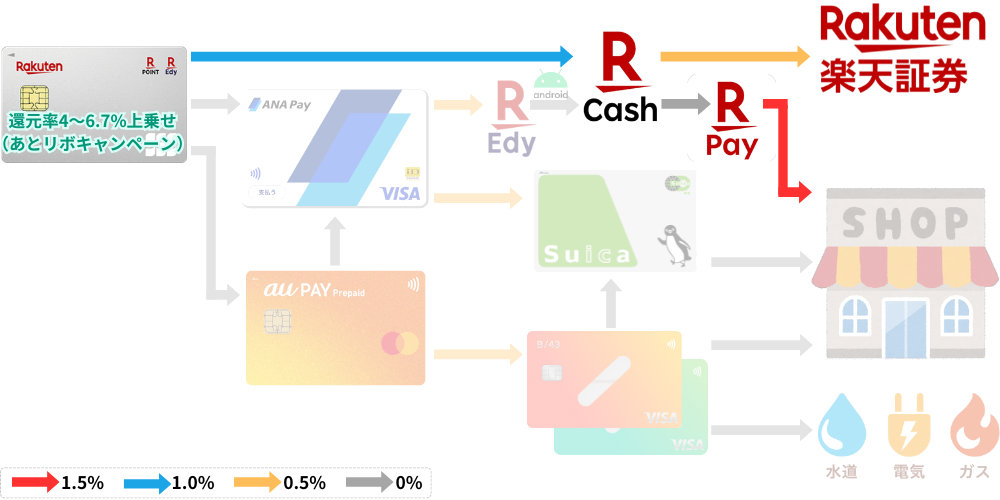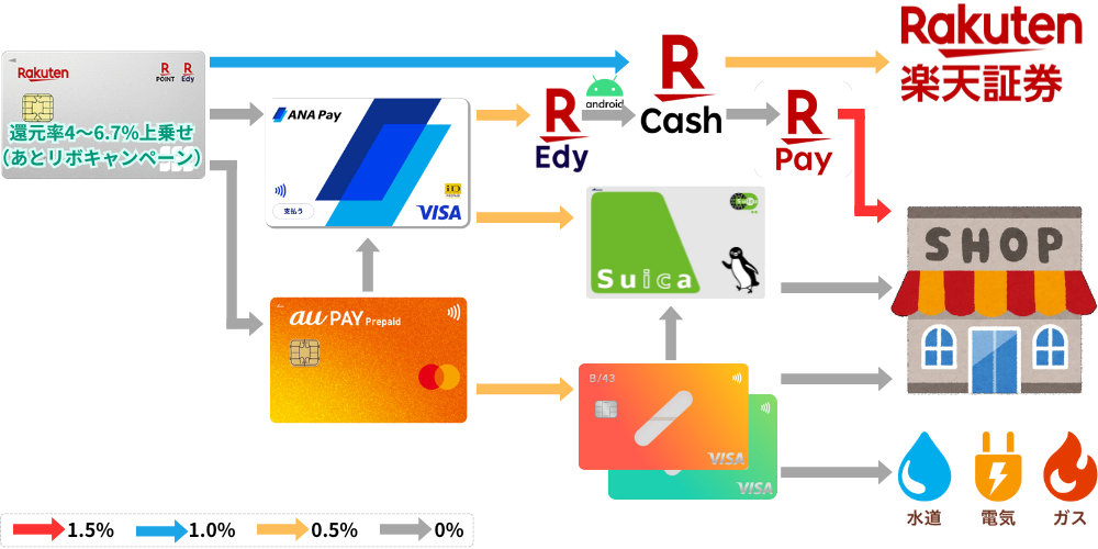 - 利用先は楽天キャッシュへの直接チャージがおすすめ(実用的)
