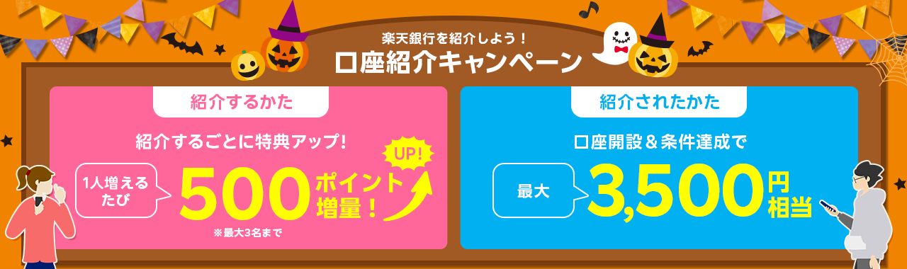 口座振替 | ・1円以上の口座振替 (1件目:200円、2~4件目:100円) ・楽天カードの引き落としは対象外 | 500円 |